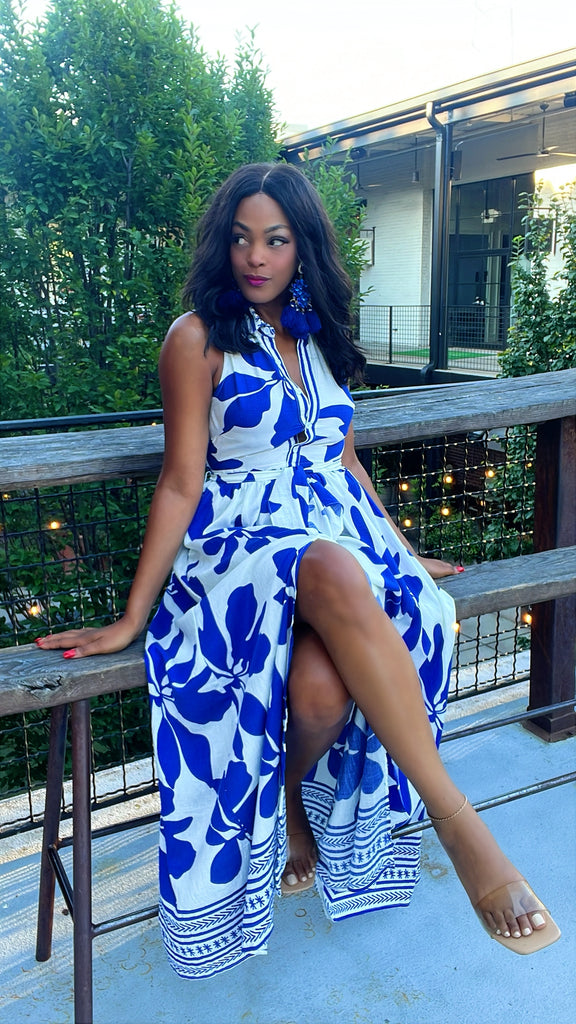 So elegant this halter dress is the perfect dress for summer nights whether on vacay or out in the city. The dress has an elastic waist, side zipper, pockets, and lots of flows. And, for those who don’t like to show their back, it’s covered!!!