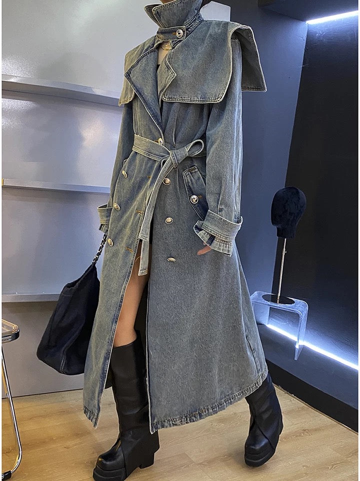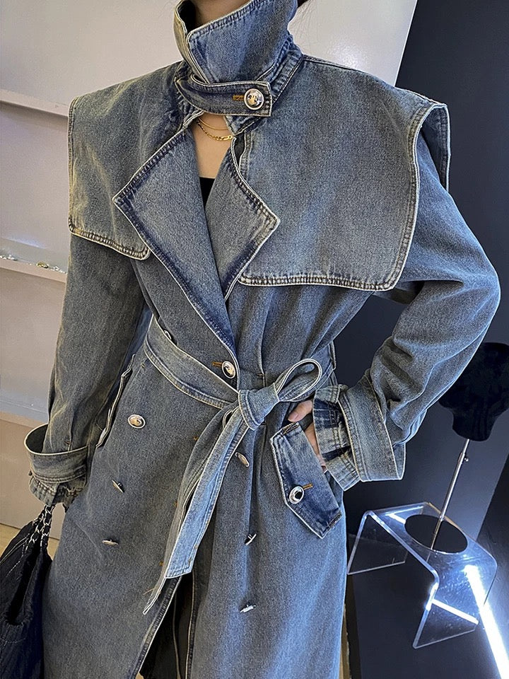 Not your average denim coat, this baddies comes with all the bells and whistles a fashionista would hope for. From is structured design and detailed, silver hardware, this oversized coat is giving sex in the city chic.