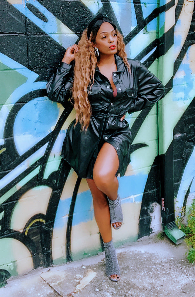 Soft, vegan leather button down that can be worn as a dress or top and come with a matching belt. This top is very stretchy and has pockets.