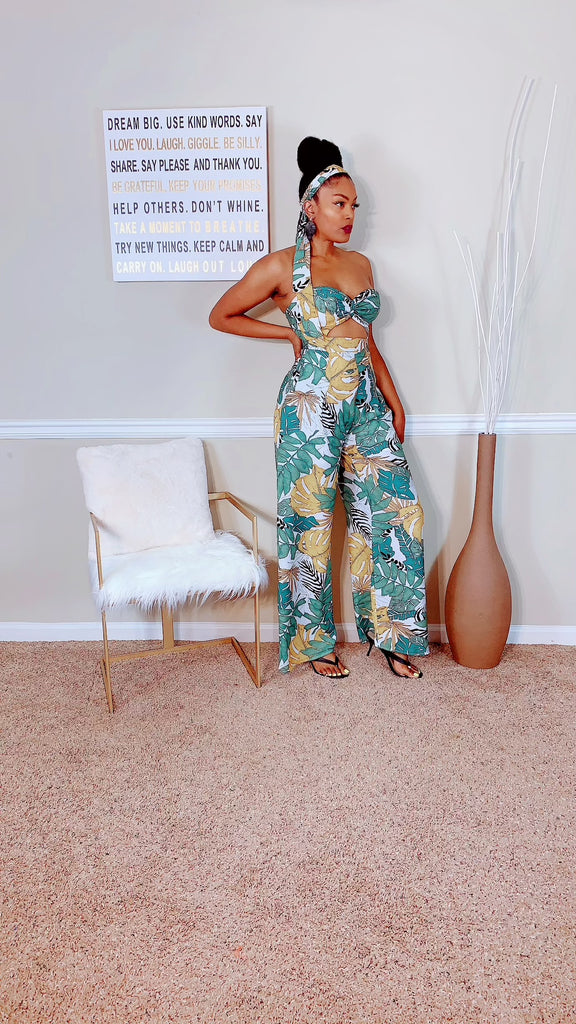 Look summer chic in this adorable wide leg, sleeveless jumpsuit  that can be worn many different ways. The jumpsuit has a back zipper closure and fits true to size.