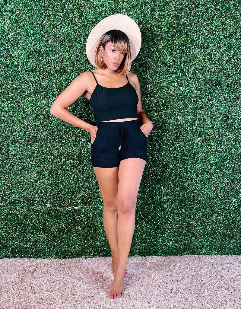 Wear chic and comfort meet. This ribbed set is full of stretch and snatch! We love the sleeveless duster that can be worn with the set or with something else! The shorts have pockets and have an amazing fit. Wear the tank and shorts alone for a more casual look.