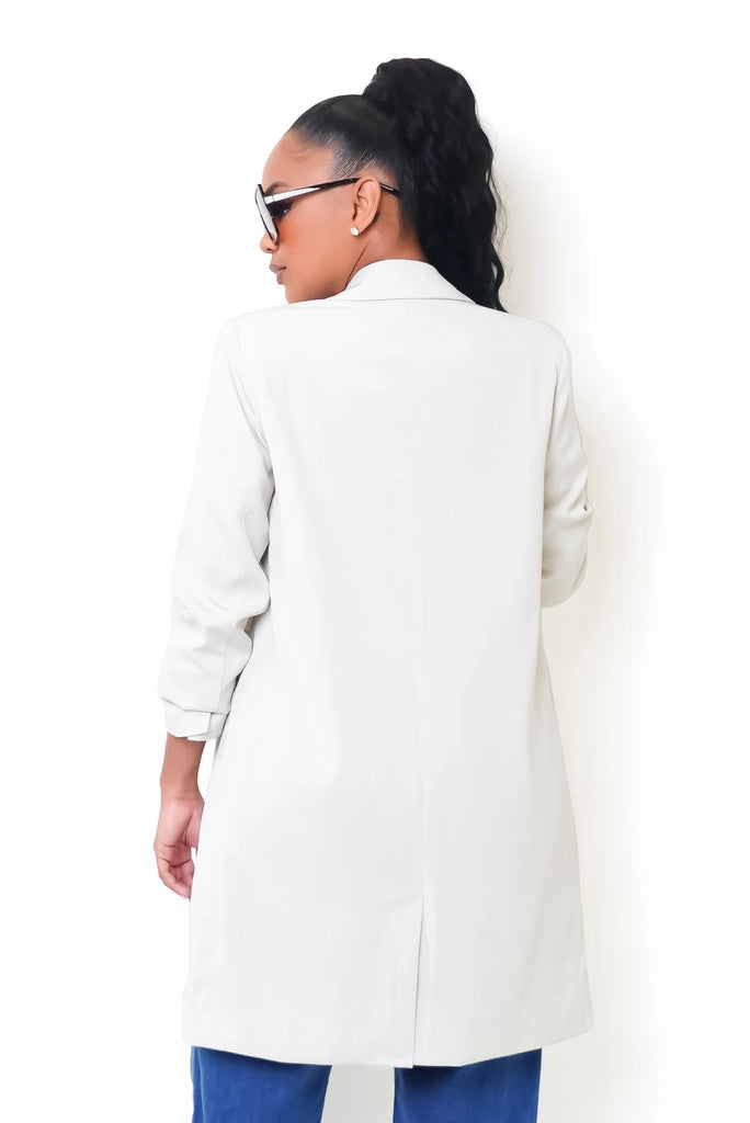 Whether as a dress or blazer this loose-fitting, boyfriend blazer is so perfect. Features contrasting black buttons that’s giving Olivia Pope, I’m handling my business, kinda vibes! Fits true to size.