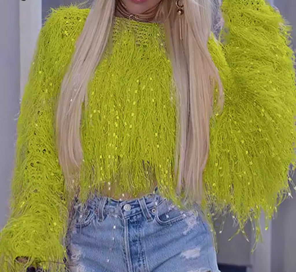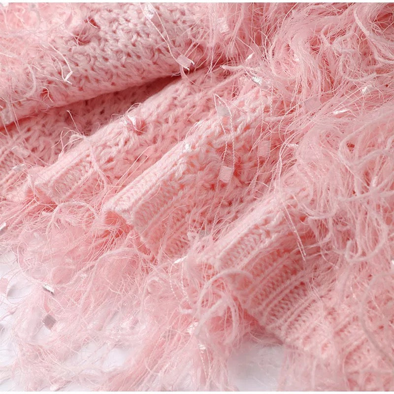 Uber soft, shaggy sweater with shimmers. The perfect winter sweater that can be dressed up or down. Def a must in all colors!
