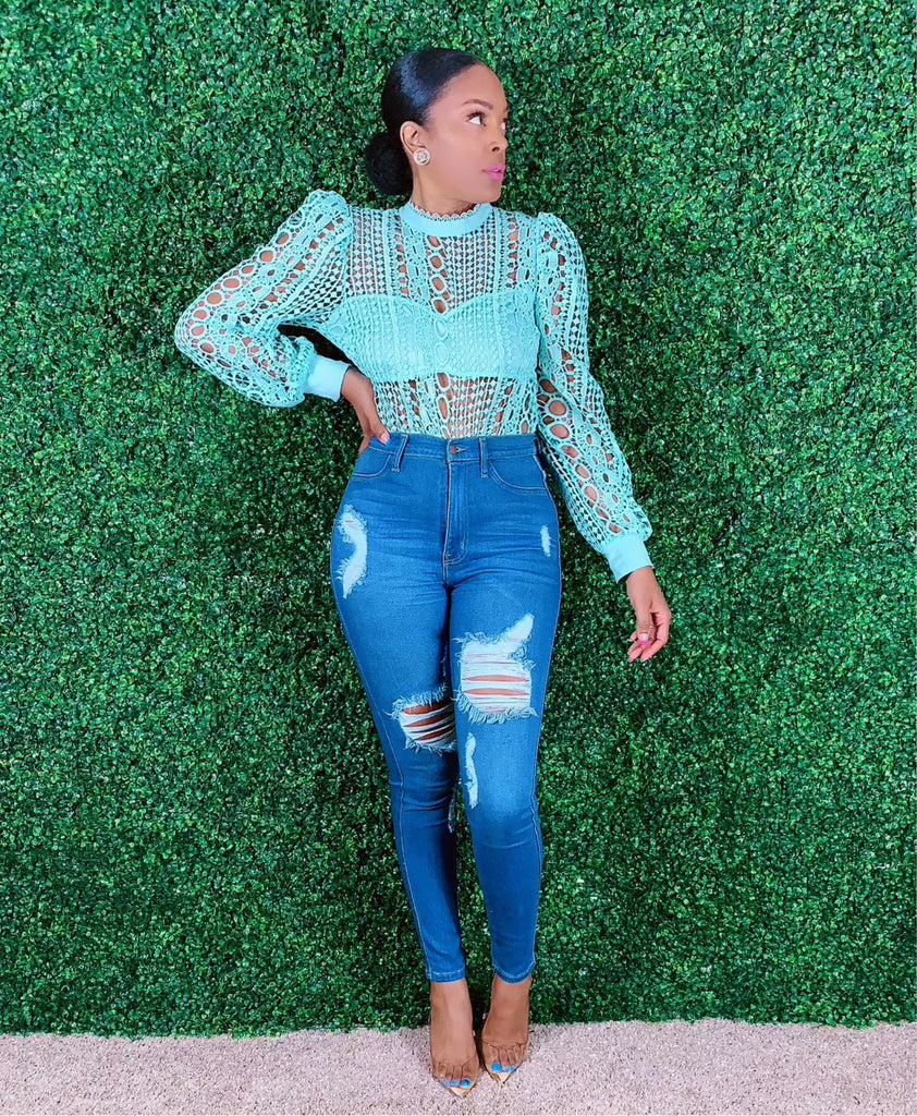 This bodysuit is gorge! The delicate lace, exaggerated shoulders, built in bandeau top and mock turtleneck really give this top character, and makes it a must have for now and fall. This top has no stretch.