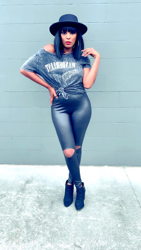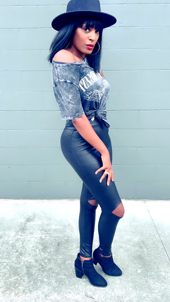 Acid washed, black, vintage, graphic t-shirt. Thick and super soft. Wear tied or off the shoulder.